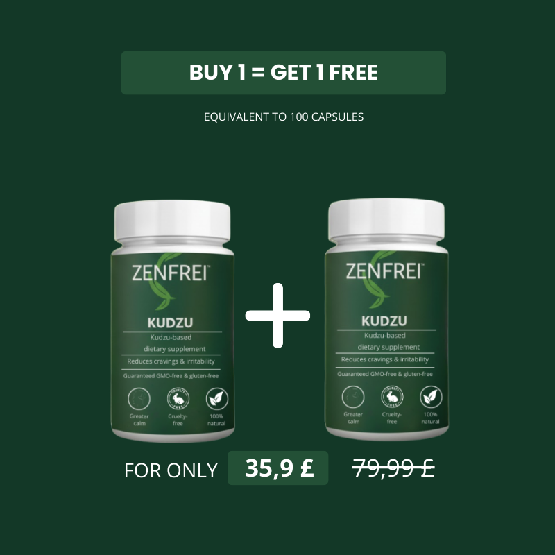 As a result, Zenfrei significantly reduces the intensity and frequency of cravings (for alcohol, tobacco, or sugar) — without frustration. Kudzu also has calming and relaxing properties, helping ease stress, irritability, and anxiety during withdrawal.